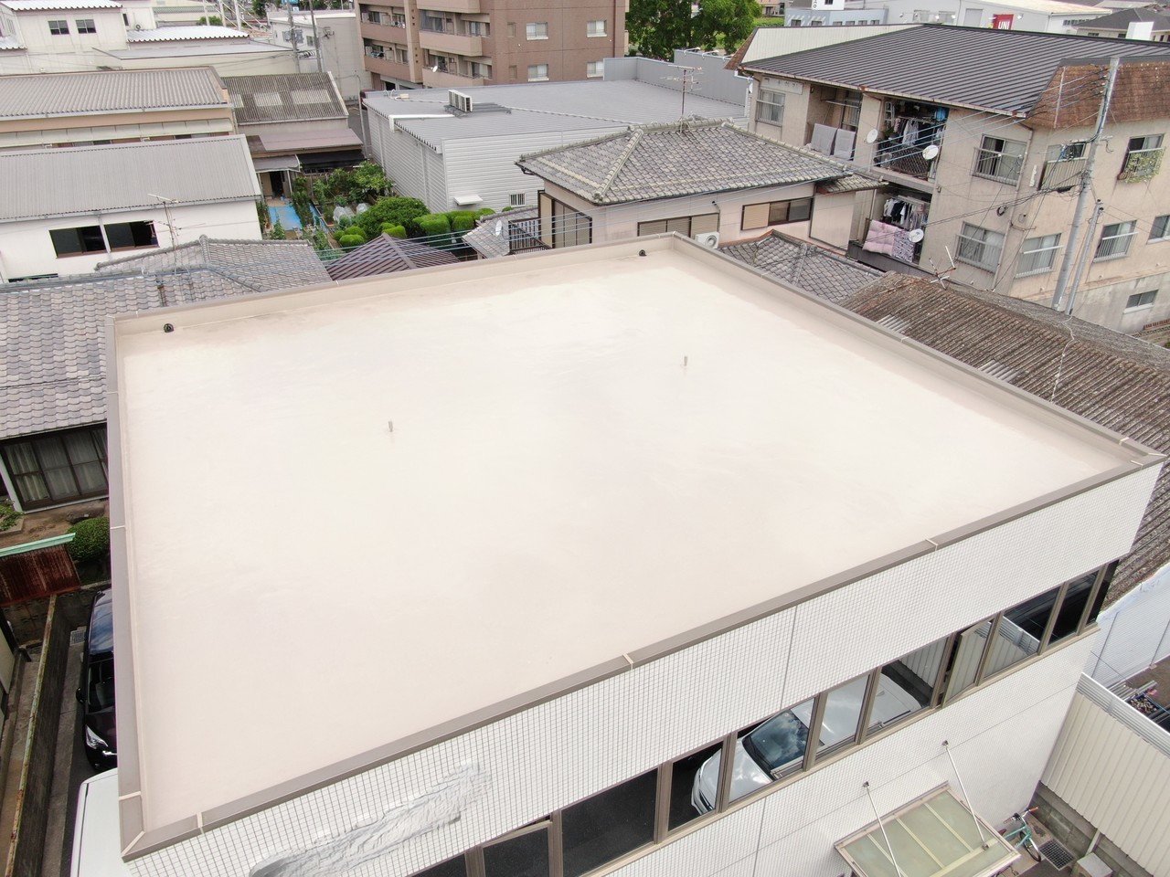 下地補修後、防水層を再形成し、屋上全体の防水性能を回復しました。