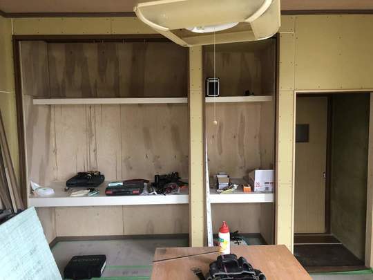 工事が終わり、養生が剥がされ、新しい壁紙が姿を現すその瞬間。