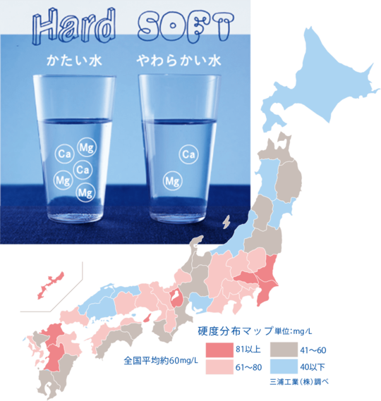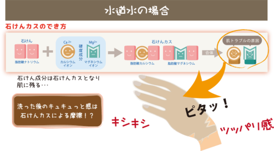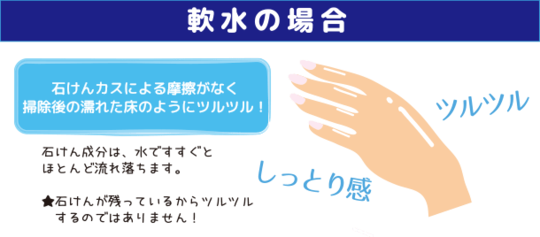 軟水はお肌にやさしい、軟水だと水まわりが汚れにくい、と言われます。