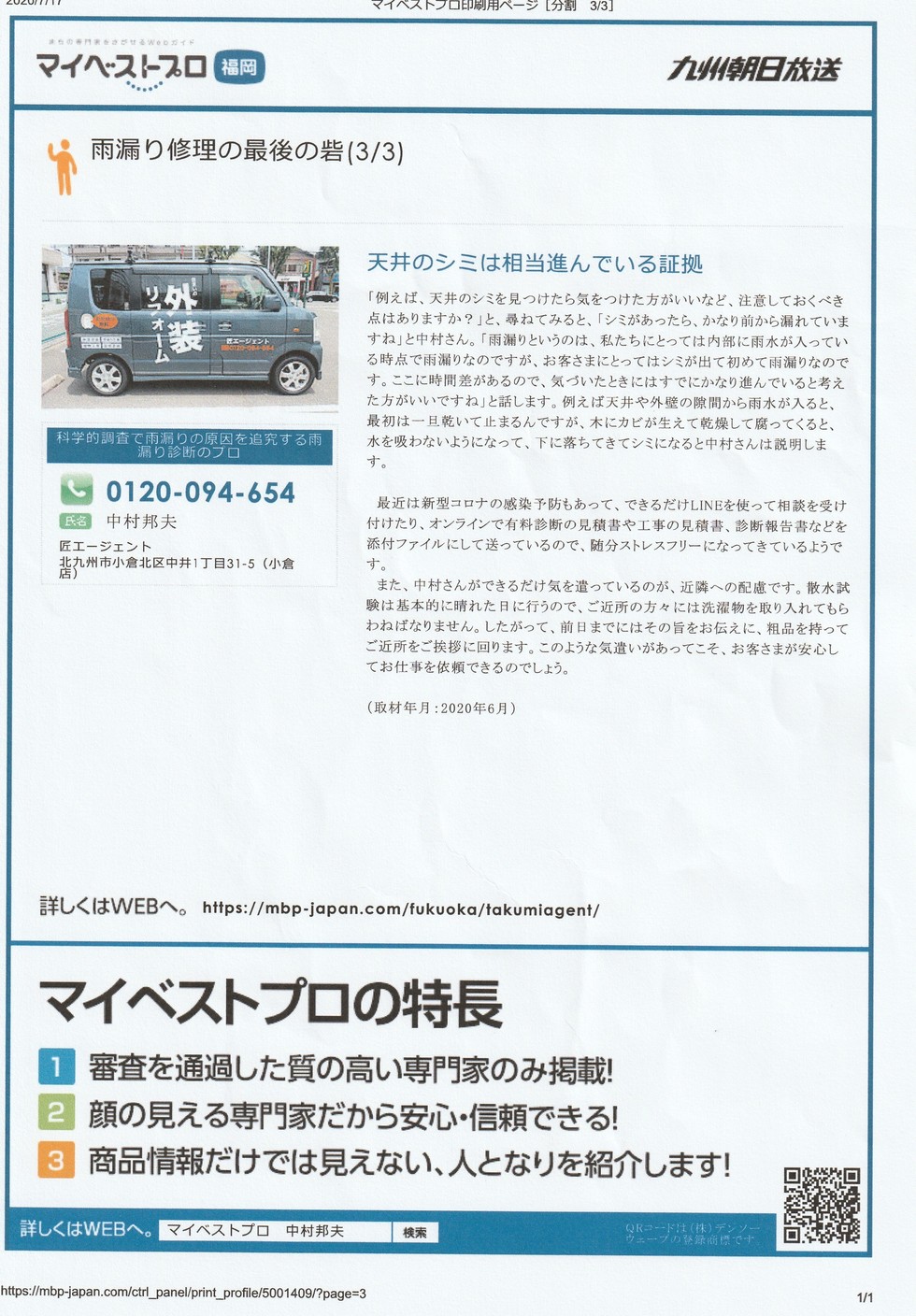 北九州市小倉北区唯一の雨漏り専門店(株)匠エージェントには、雨漏り診断士が2名が在籍しております!